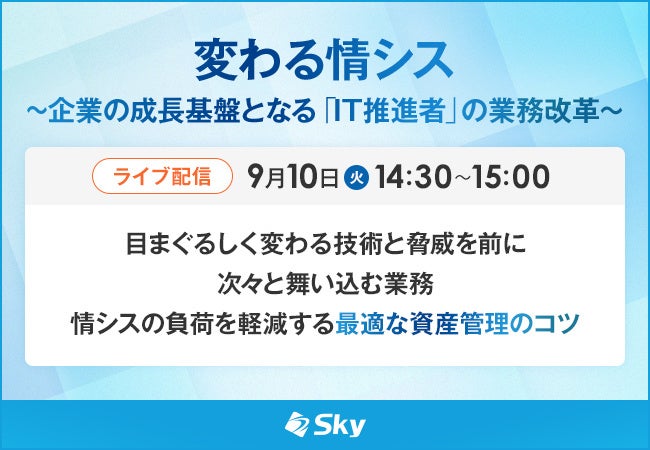 ITmedia NEWS 、 ITmedia ビジネスオンライン主催のライブ配信セミナー「変わる情シス~企業の成長基盤となる「IT推進者」の業務改革~」に協賛いたします。