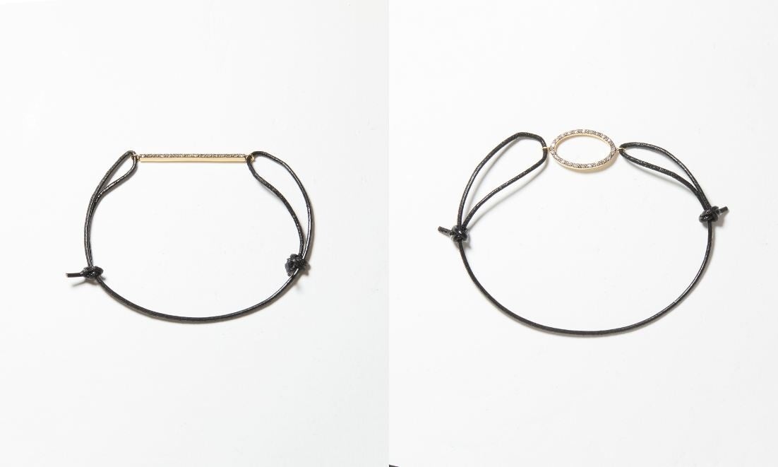 今年はブラックのレザーコードに、パヴェダイヤモンドで象ったロングバーと大ぶりなオーバルモチーフを添えました。