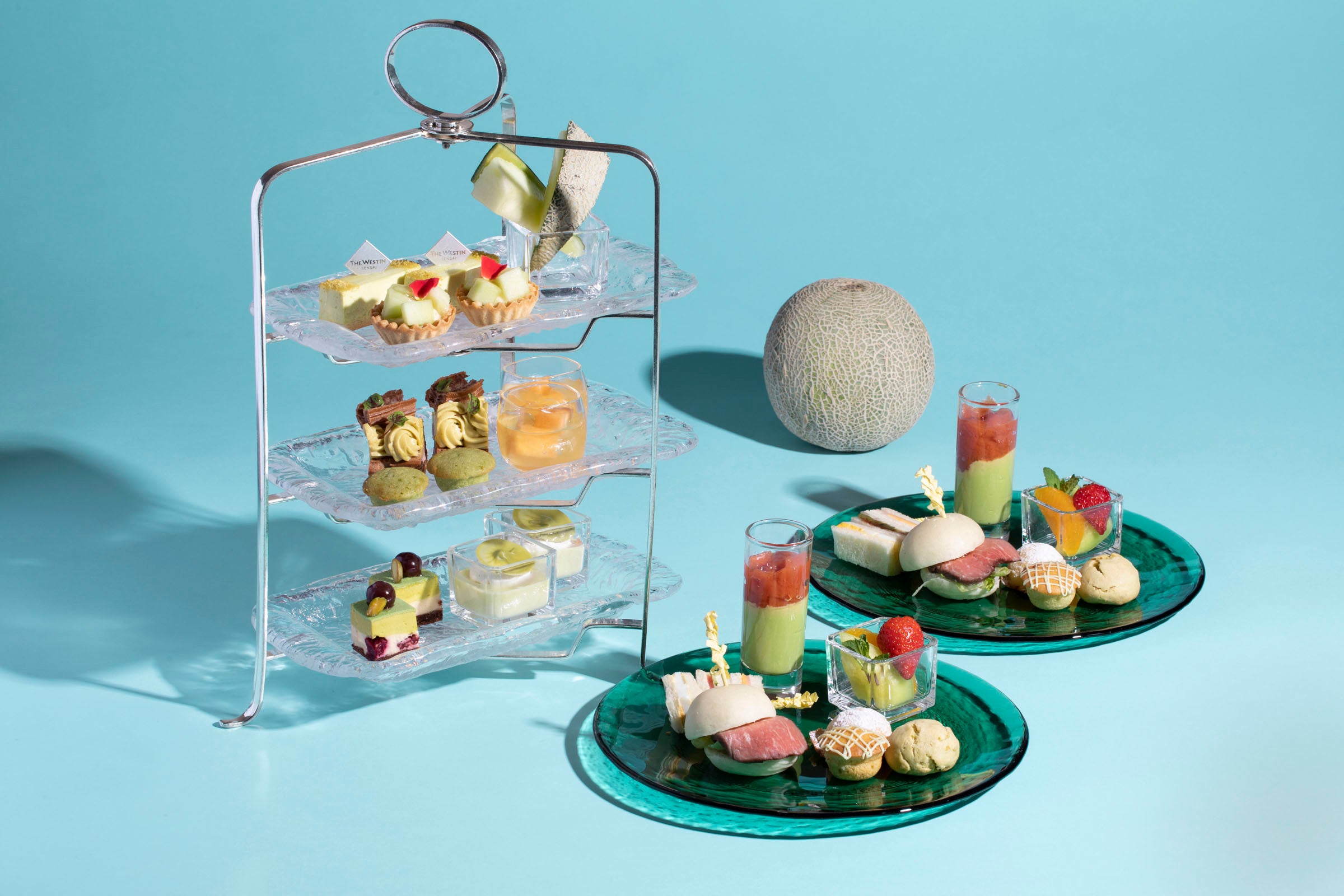 やわらかなレアチーズムースの上に、ジューシーできめ細かい「天空のメロン」をスライスしたレアチーズケーキは、まさに新緑の爽やかさを思わせるみずみずしい味わい。ピスタチオクリームとクリームチーズ餡をシュー生地でサンドしたパリブレストは、軽いシュー生地と濃厚な2層のクリームの絶妙なコントラストをお楽しみいただけます。もちろん、「天空のメロン」の甘みをダイレクトに味わえるフレッシュメロンも。また、ウイークエンド限定で登場する、香り高いピスタチオと濃厚なミルクのアイスクリームは、パティシエがお客様の目の前で熱々のフルーツソースを掛け、溶け出すアイスクリームの滑らかな味わいもお楽しみいただける一皿です。
