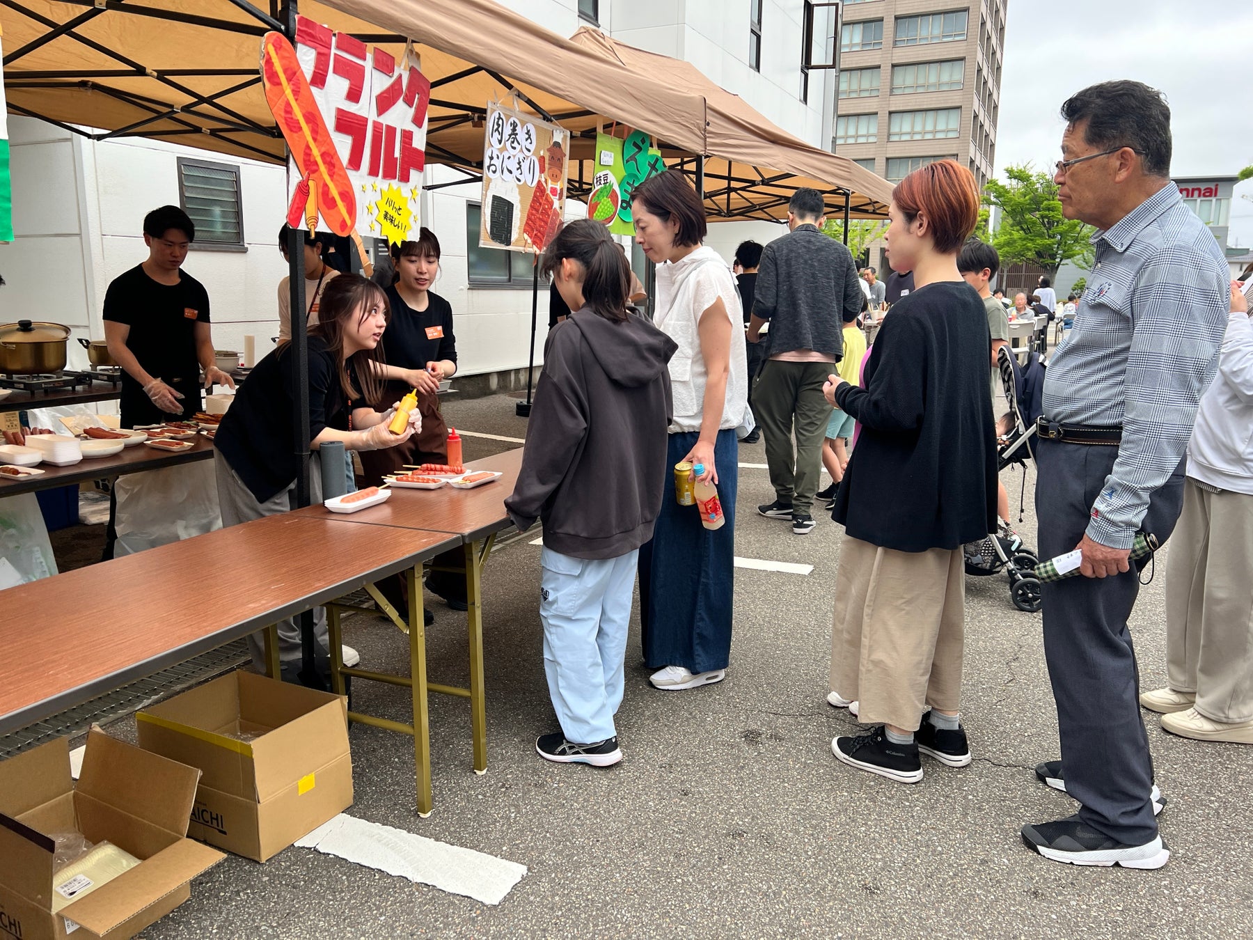 イベントには、石川県内外から総勢440名の賃貸オーナー様とそのご家族らが参加。屋外には「焼き鳥」「肉巻きおにぎり」「地元野菜カレー」など地元色豊かなフードコーナーが並び、生ビールやソフトドリンクは飲み放題。屋内では「ものまね芸人によるステージ」「お子さま向け縁日コーナー(輪投げ・射的・ヨーヨー釣り)」が行われ、子どもたちの笑顔と歓声が会場を彩りました。