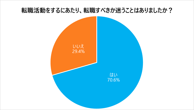 (2)約7割が「転職活動をするにあたり、転職するか迷うことがあった」と回答