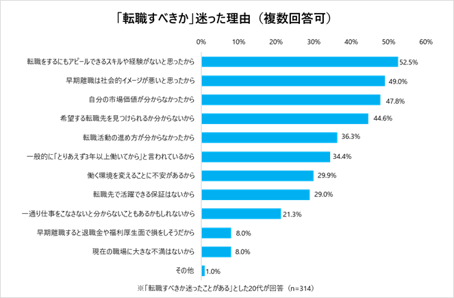 「社会人になる前から転職を視野に入れていた」と回答した20代が6割に迫る。一方、「転職するにあたり、転職するか迷うことがあった」の回答も7割超/20代アンケート