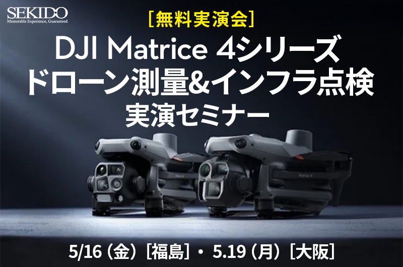 DJI(ディージェイアイ)正規販売代理店としてドローンビジネスの最先端を支える株式会社セキド(本社:東京都港区、代表取締役:⼤下貴之、以下「セキド」)は、株式会社スペースワン(本社:福島県郡山市、代表取締役:小林康宏)、株式会社ミラテクドローン(本社:東京都品川区、代表取締役社長:佐々木康之)と共同で、2025年5月16日(金)福島県郡山市・5月19日(月)大阪府高槻市にて、ドローンによる測量やインフラ点検業務の効率化を紹介する無料実演会「DJI Matrice 4シリーズ ドローン測量&インフラ点検 実演セミナー」を開催いたします。