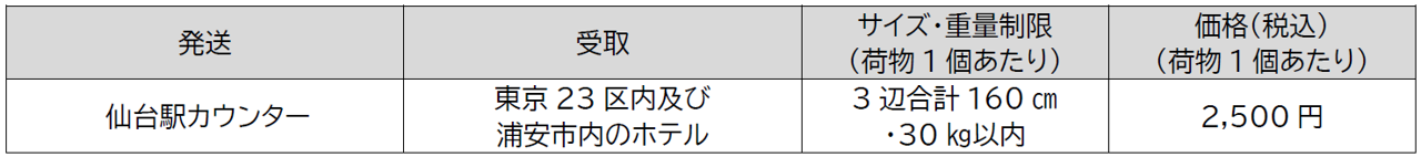 ※「BAGGAGE STORAGE+」でご利用いただけるのは仙台駅からの発送のみとなります。