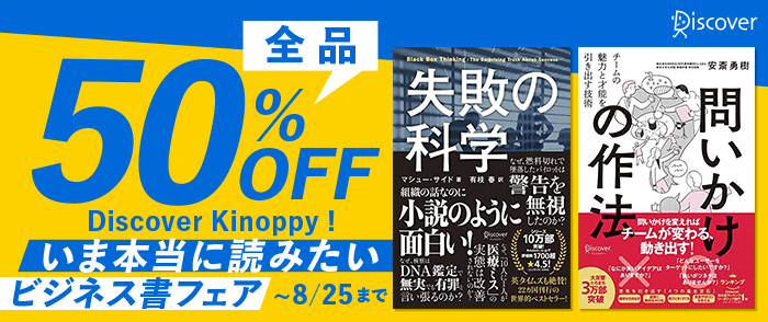 株式会社ディスカヴァー・トゥエンティワン(本社:東京都千代田区、取締役社長:谷口奈緒美)は、2022年8月12日から8月25日の14日間、紀伊國屋書店Kinoppyにて『Discover Kinoppy!いま本当に読みたいビジネス書フェア』を開催します。