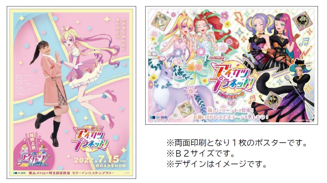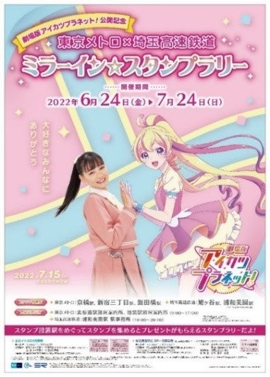 このスタンプラリーは、アイカツシリーズ最新作『劇場版アイカツプラネット!』の映画公開を記念して実施するもので、東京メトロ各駅(一部の駅を除く)及び埼玉高速鉄道各駅に設置したラック等からリーフレットを入手し、東京メトロスタンプ設置駅3駅、埼玉高速鉄道スタンプ設置駅2駅の合計5駅を巡るものです。