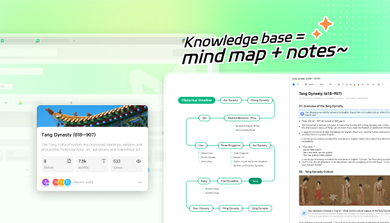 AIによる自動マップ生成やチームでの共同編集機能などを備え、思考の流れを形にし、知識を体系化することをサポートします。