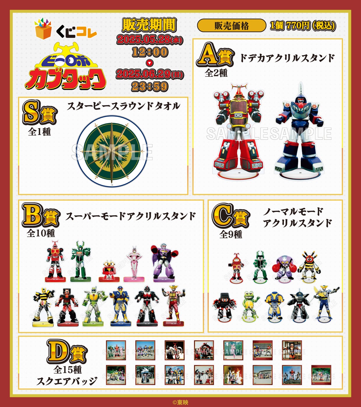 株式会社エディア(本社:東京都千代田区、代表取締役社長:賀島 義成)の子会社、株式会社ティームエンタテインメント(本社 :東京都千代田区、代表取締役社長 :賀島 義成 以下 :ティームエンタテインメント)は、2025年5月28日(水)12:00より「ビーロボカブタック」のオリジナルグッズを、インターネットで購入できる抽選くじサービス『くじコレ』にて販売開始したことをお知らせいたします。