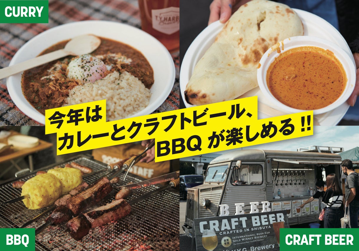 今回のフードはジャンルを絞って招集。そのなかでもカレーは特にバリエーション豊かなメニューをご用意。1食だけではなく、是非2、3店舗のカレーを試してみてください。さらに、本格BBQが会場内で楽しめるBBQパークがオープン!! 専用コンロで楽しめるので、仲間と家族とBBQしながら満喫してください。