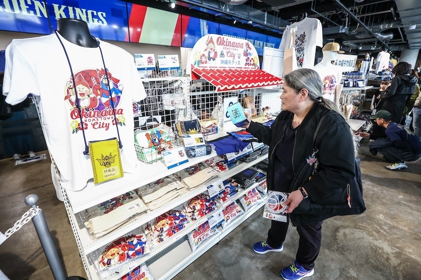 ・アリーナショップにて沖縄市産品のキングスグッズや沖縄市コラボグッズを販売