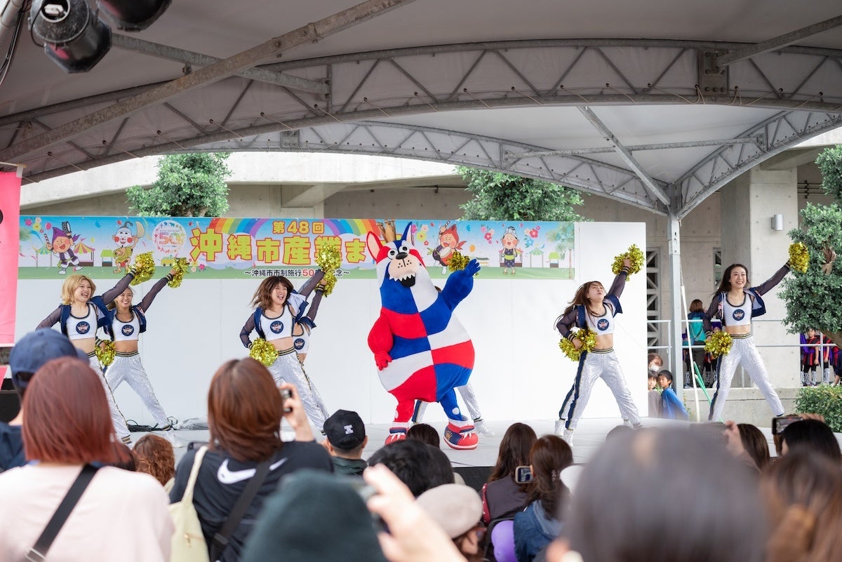 今回は沖縄市と連携し、コザ運動公園での「沖縄市産業まつり」とEnjoy Okinawa City Dayを初めて同日開催しました。キングス特設ブースでのイベントやステージパフォーマンスで会場を盛り上げ、キングスホームゲーム観戦前の多くのお客さまにもお立ち寄りいただきました。