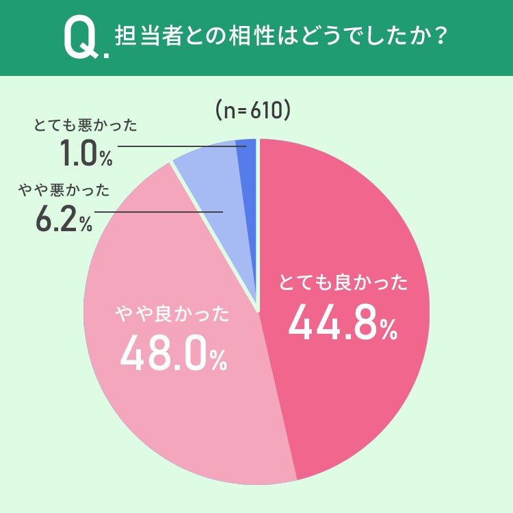 92.8%の方が担当者との相性は「とても良かった」あるいは「やや良かった」と回答しています。