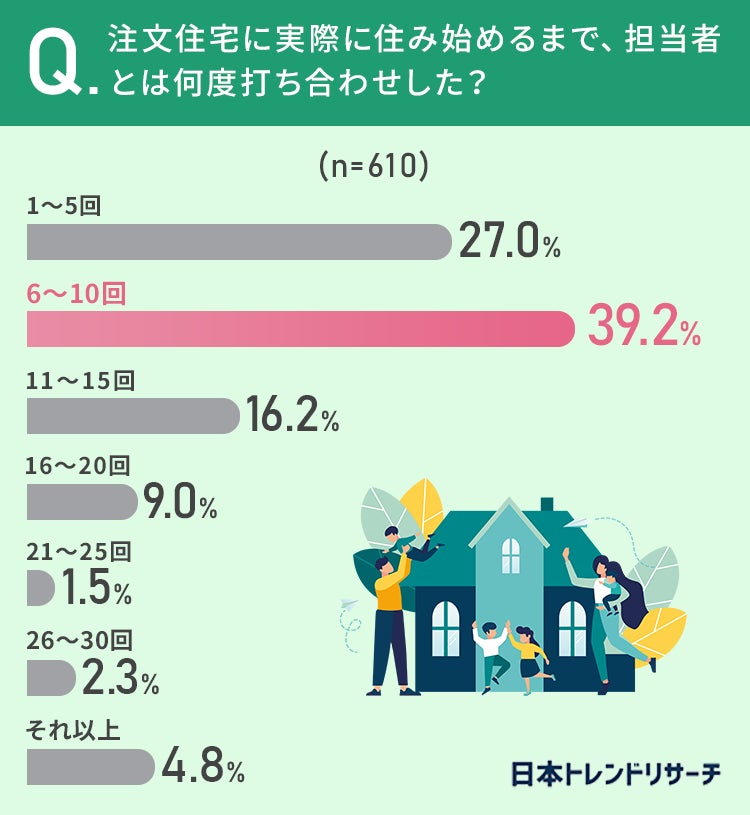 ■39.2%が、注文住宅に実際に住み始めるまで「6~10回」打ち合わせをした