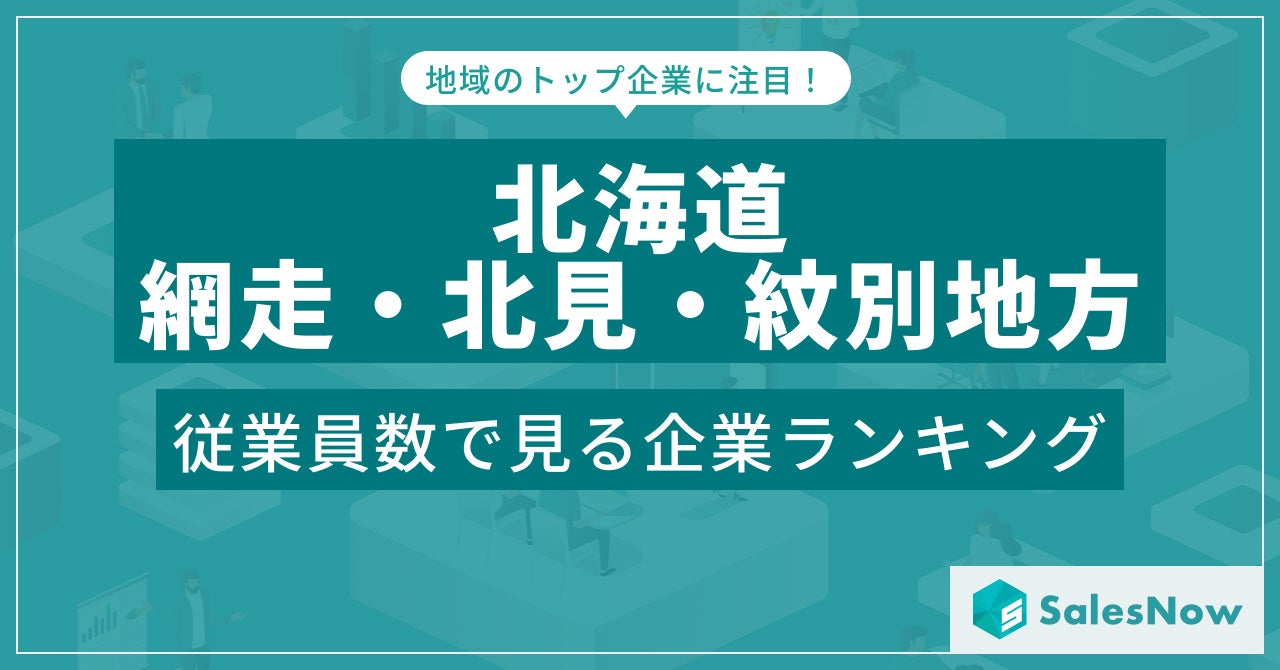 「誰もが活躍できる仕組みをつくる。」をミッションに掲げ、セールスチームの武器となるデータベース「SalesNow」を展開する株式会社SalesNow(本社:東京都渋谷区、代表取締役:村岡功規、以下「SalesNow」)は、国内540万社の企業情報を完全網羅した日本最大級のデータベース「SalesNow DB」より、北海道網走・北見・紋別地方に本社を置く企業の従業員数ランキングを調査しました。