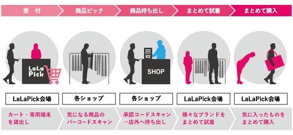 本サービスでは、事前予約者に専用カートまたはバッグ、専用モバイル端末を貸与し、対象ショップの商品を自由に館内へ持ち出して、4F「LaLaport CLOSET」会場でまとめて試着・購入できるようにします。