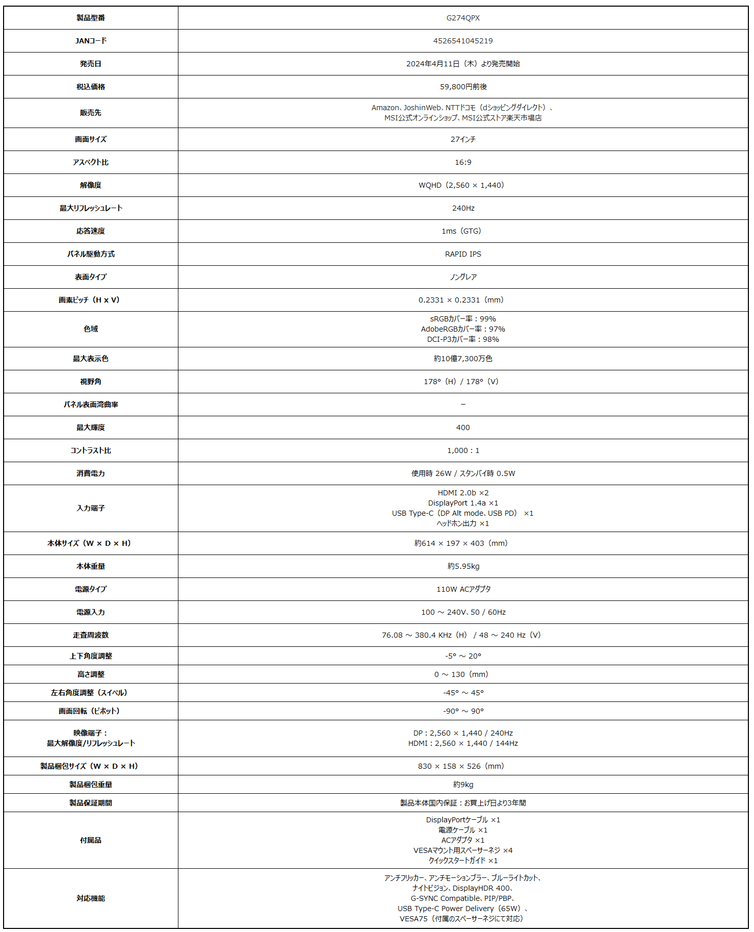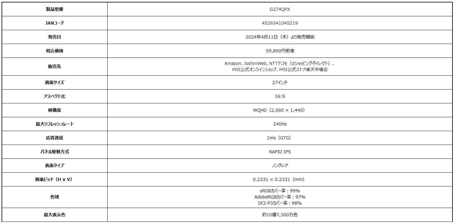 ■G274QPX製品ページ: https://jp.msi.com/Monitor/G274QPX