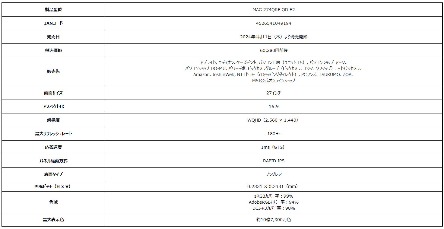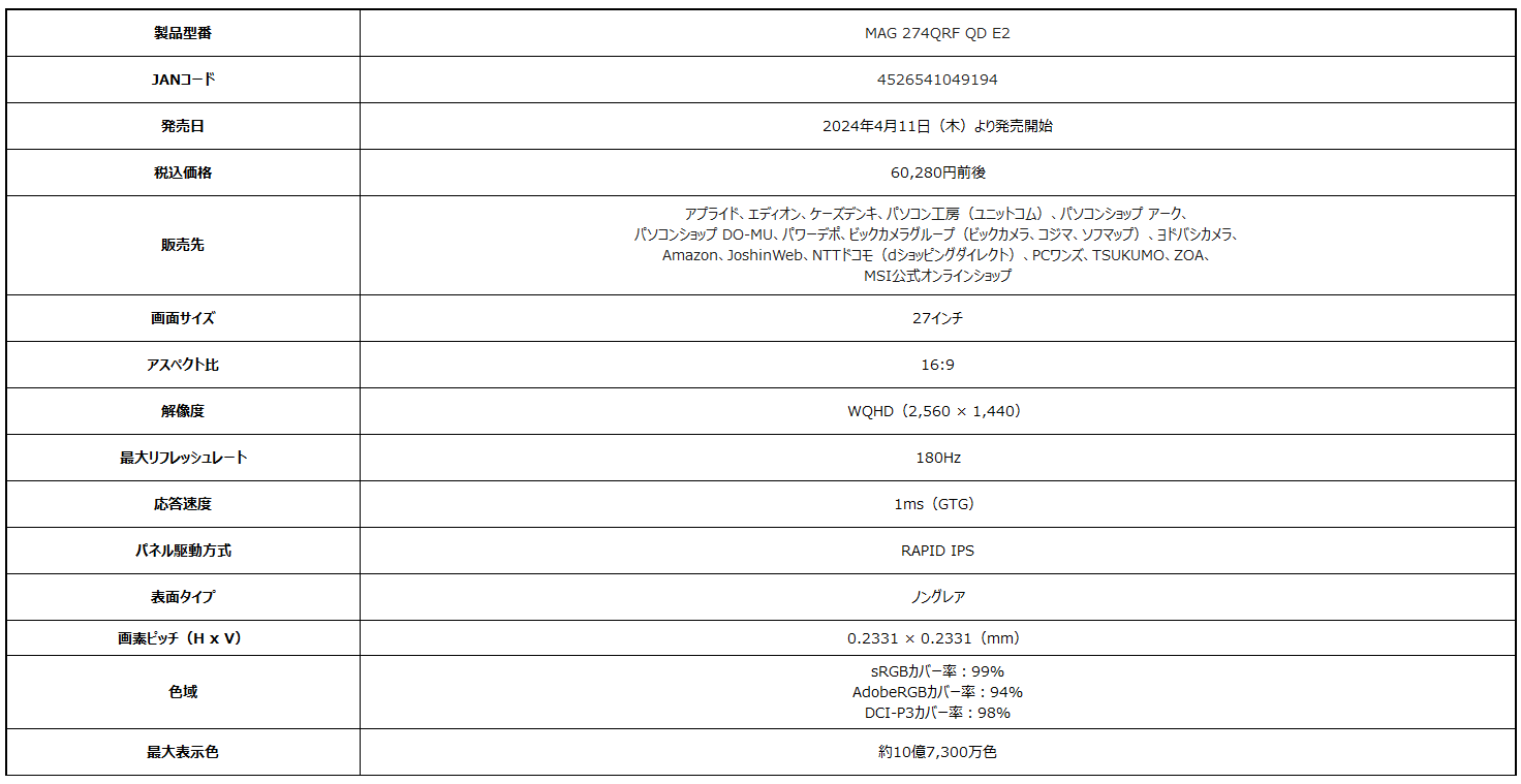 ■MAG 274QRF QD E2製品ページ: https://jp.msi.com/Monitor/MAG-274QRF-QD-E2