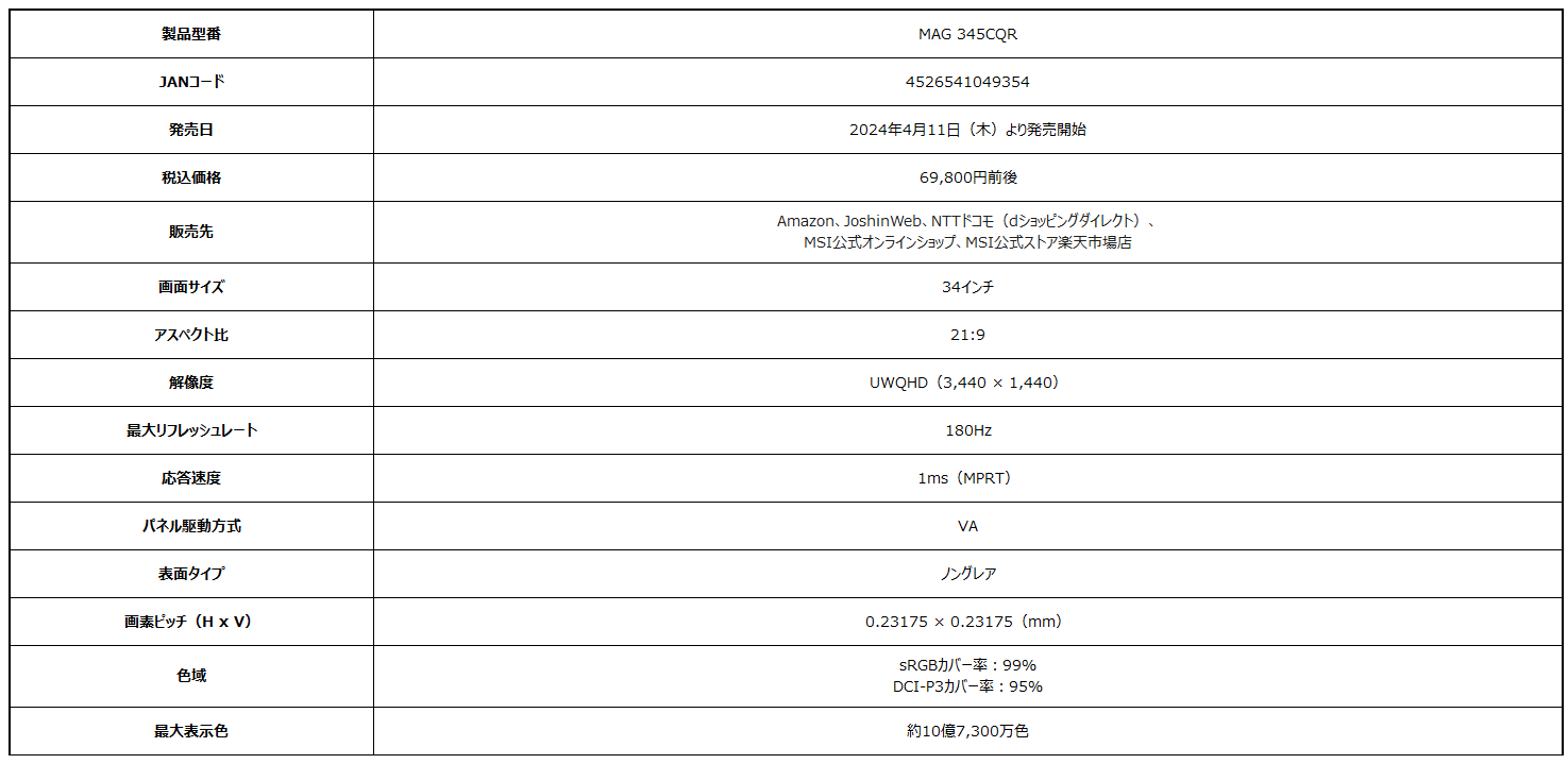 ■MAG 345CQR製品ページ: https://jp.msi.com/Monitor/MAG-345CQR