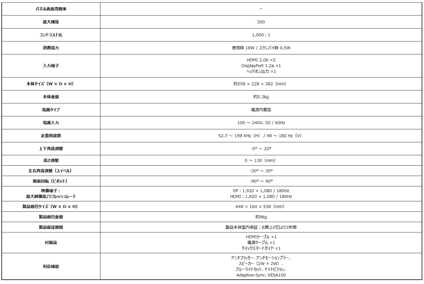 「MAG 345CQR」は人間の視野とほぼ同じ湾曲率1,000R、広大な表示領域を誇るUWQHD(3,440 × 1,440)解像度の湾曲ウルトラワイドパネルにより圧倒的な没入感が得られ、引き締まった黒の表現が得意なVAパネル、一般的な144Hzのゲーミングモニターと比べてアドバンテージのある180Hzのリフレッシュレート、応答速度1ms(MPRT)の高いスペックを誇り、情報量の多さと没入感を重視する方にお勧めです。