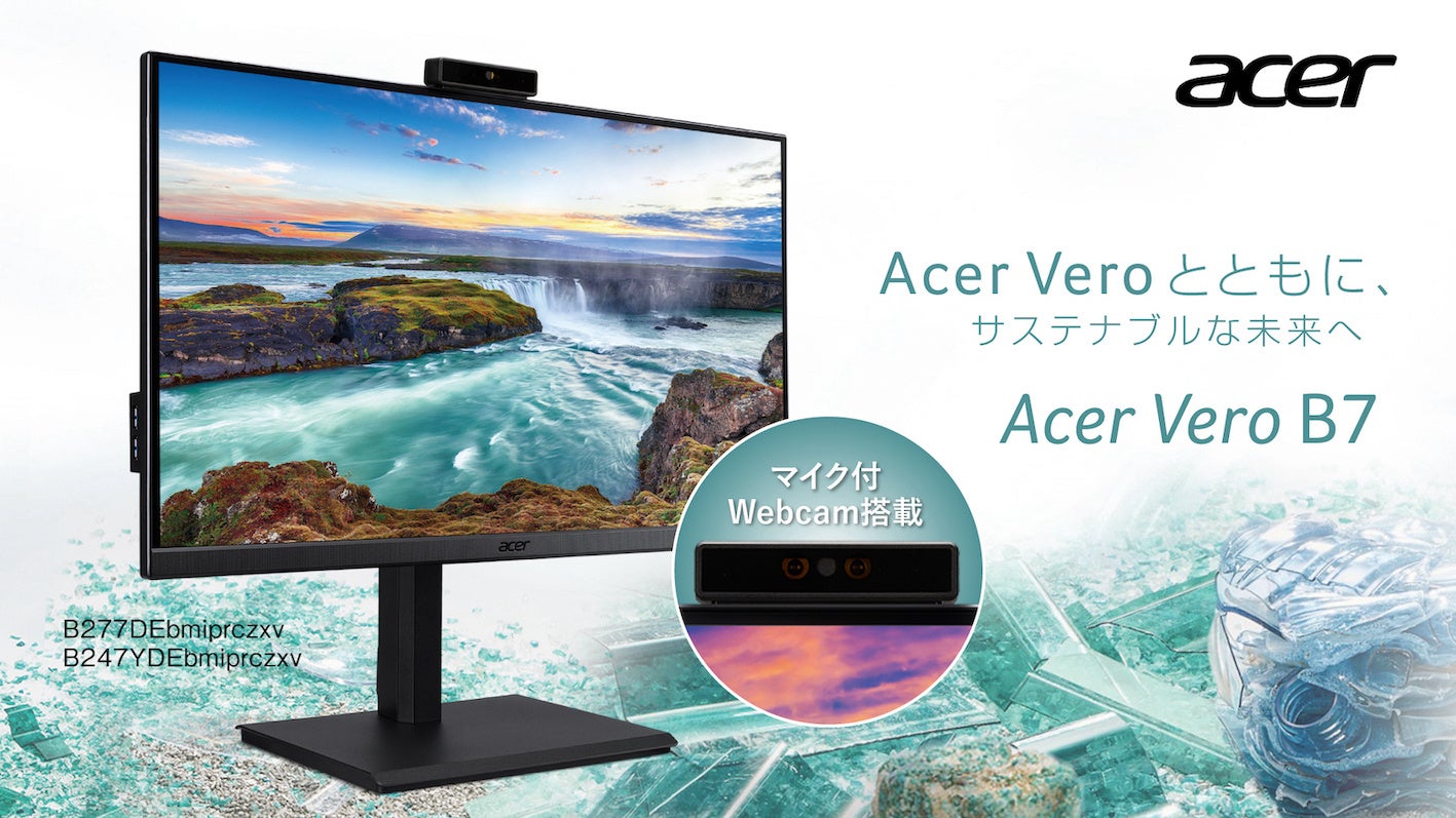 日本エイサー株式会社(本社:東京都新宿区、代表取締役社長:ボブ・セン)は、Acerの統合的なサステナビリティに考慮した取り組みを具現化するサステナブルな製品シリーズAcer Vero(ヴェロ)より、Webカメラを搭載した27インチおよび23.8インチモニター「B277Dbmiprczxv」「B247YDbmiprczxv」を、2023年9月7日(木)に発売します。