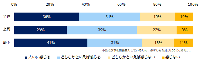 1:7割が、上司または部下とのコミュニケーションに「課題がある」と回答。具体的な課題、上司トップは「相手との精神的な距離を感じる」、部下トップは「指示・指導がわかりづらい」。(図1~3)