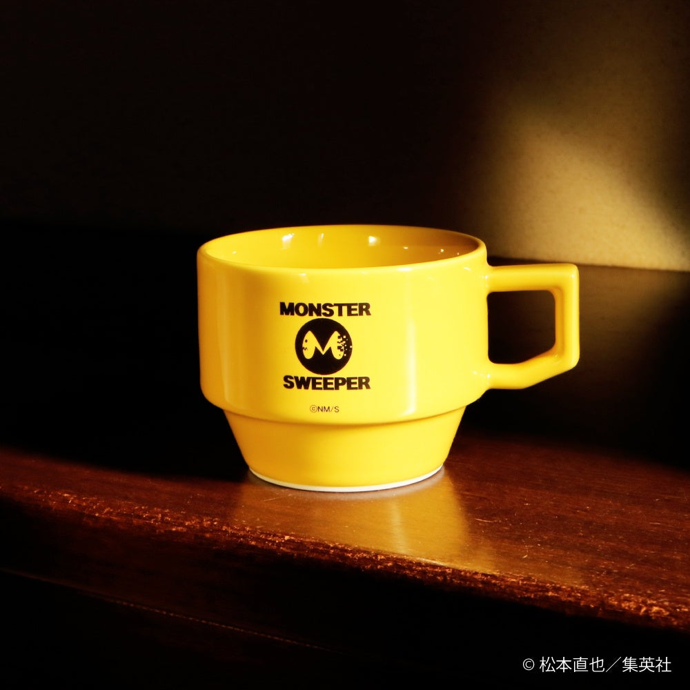 可愛いレトロカラーのボディに、カフカとレノがかつて所属した「モンスタースイーパー社」のロゴをデザインしたマグカップです。同商品同士でのスタッキングも可能です。