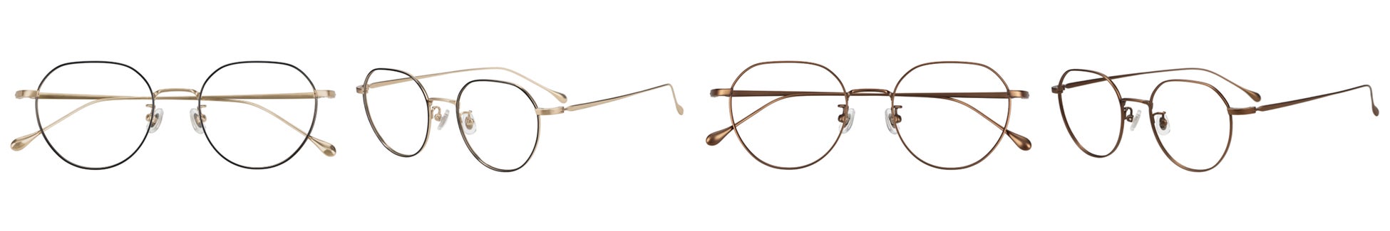 弾力性に優れたβ-チタンを使用した、締めつけ感の少ないかけ心地が特長のチタンシリーズから新作が登場します。つるの先端にはあえて重みを持たせる設計を採用。レンズ装着時の重心バランスを安定させることで、ずれにくく、より快適なかけ心地を実現しました。デザインは、幅広い年代が取り入れやすいオーバル型やボストン型、存在感のある大枠のウェリントン型などを新たにラインアップ。カラーはチタン素材ならではの肌なじみのよい高級感ある色味を採用し、ビジネスシーンから休日スタイルまで幅広く活躍します。