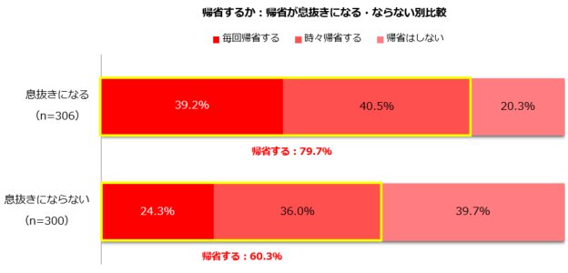 4.帰省するか:帰省が息抜きになる・ならない別比較