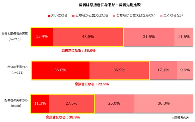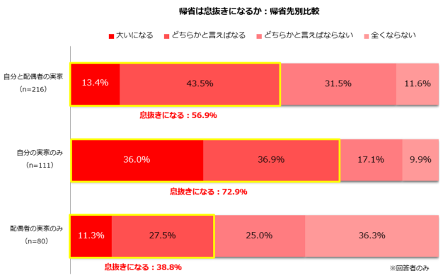 「息抜きになる」のは、帰省先が「自分の実家のみ」72.9%「配偶者の実家のみ」38.8% ~しゅふJOB総研調査~