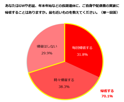 1.GWやお盆、年末年始などの長期連休に「帰省する」70.1%