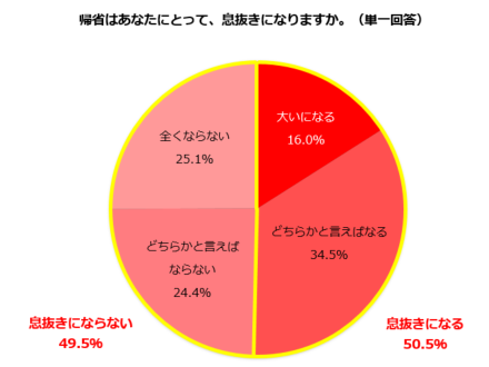 3.帰省は息抜きに「なる」50.5%、「ならない」49.5%