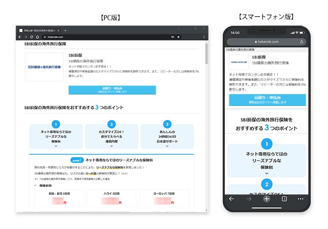 保険選びサイト「保険市場」に掲載を開始したSBI損保の『SBI損保の海外旅行保険』は、インターネットでお申し込みいただける保険商品です。「保険市場」PCサイトおよびスマートフォンサイトにて、商品の詳細をご確認いただけます。