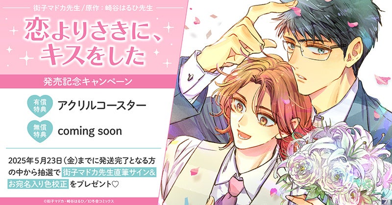 ホーリンラブブックスでは街子マドカ先生/原作:崎谷はるひ先生最新コミックス『恋よりさきに、キスをした』発売を記念して、豪華キャンペーンを実施いたします!