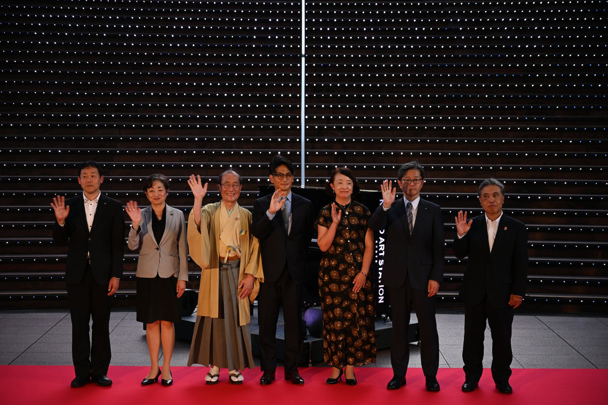 また、会の後半には、セレモニー終了後〜7月6日(木)までの3日間限定で体験できる参加型アート『NAKED ART STATION -KYOTO-』のデモンストレーションを実施。地元の京都市立芸術大学の信貴美乃里(しぎみのり)さんに、ピアノ演奏のパフォーマンスを披露いただきました。演奏いただいたリストの『愛の夢』に合わせて、大階段のLEDが連動し、生み出すアートをお楽しみいただきました。観覧に来ていたお客さんからの大きな拍手に包まれ、セレモニーの幕は閉じました。
