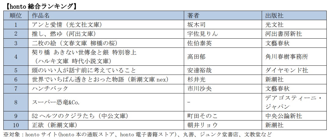 【honto総合ランキング】