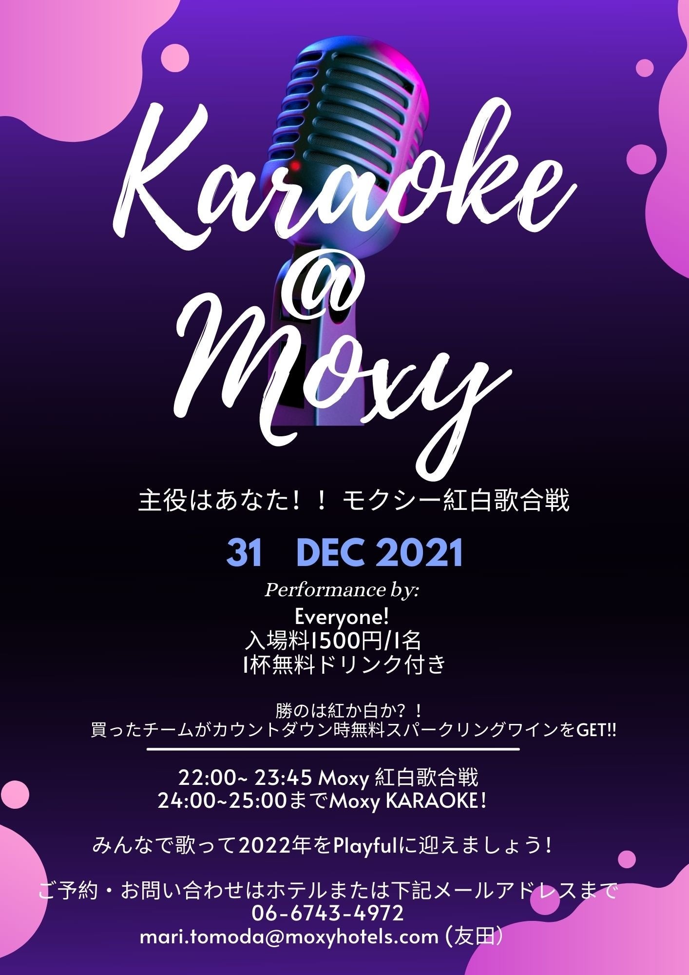 次世代のライフスタイルホテル:モクシー大阪新梅田(所在地:大阪市福島区 総支配人:友田 真里)では、 2021年12月31日(金曜日)にカウントダウン2022を開催!夜のお食事とDJパフォーマンスその後はKaraoke@Moxyがあり、 お客様とCREW一体型イベント。