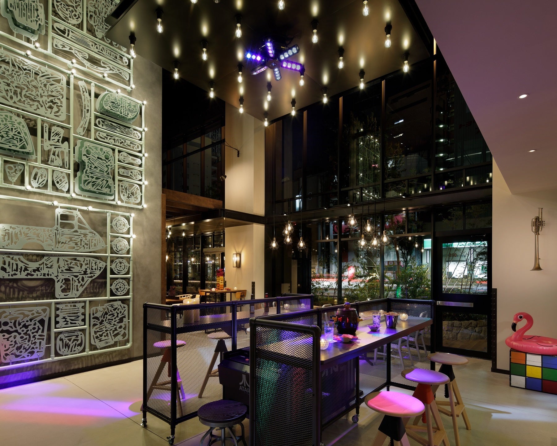 モクシー大阪新梅田は開放的なロビーと洗練されたラウンジエリアでまるで異国のホテルにいるかのように皆様を楽しませます。次世代のライフスタイルホテルで2022年を迎えませんか?