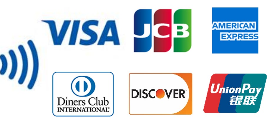 Visa、JCB、American Express、Diners Club、Discover、銀聯