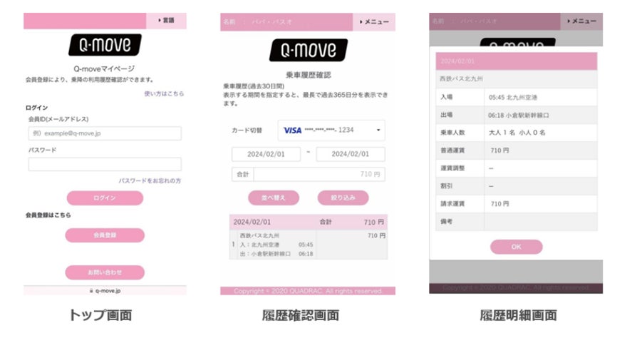 交通事業者向け決済及び認証のプラットフォームを提供する QUADRAC の Q-move サイト( https://q-move.info/ )にアクセスいただき、「マイページ」の会員登録手続きの後ご覧いただけます。