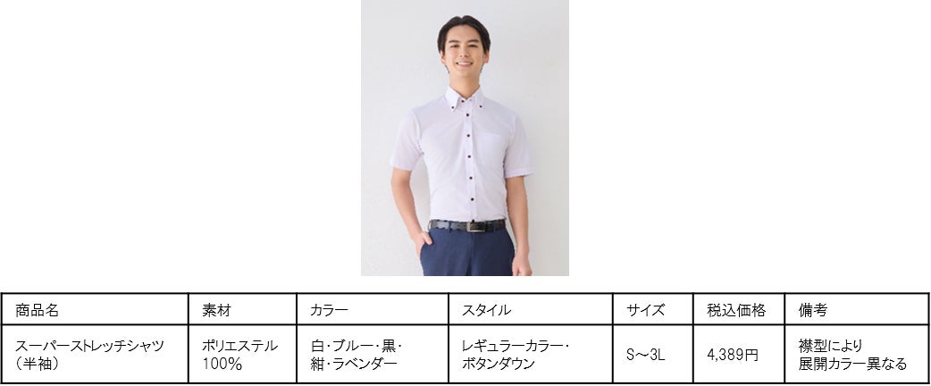 今春は、日焼け対策や身だしなみの観点から夏でも長袖を着用する方に向け2種類の長袖シャツと、クールビスにおすすめの4種類の半袖シャツをラインナップいたしました。高い通気性と吸汗速乾性のある素材、通常2枚で仕立てる「背ヨーク(肩回り)」を1枚で仕立てるAOKI独自「1枚ヨーク」仕立てを採用したことで、べたつき・シャツ内のムレを軽減し、夏でも快適にお召しいただけます。加えて、ノンアイロンを標準装備しており、夏のアイロンがけの手間が省けます。また、一部品番では、生地が肌に触れている間はひんやり感が持続する持続性冷感加工を施したシャツもご用意いたしました。