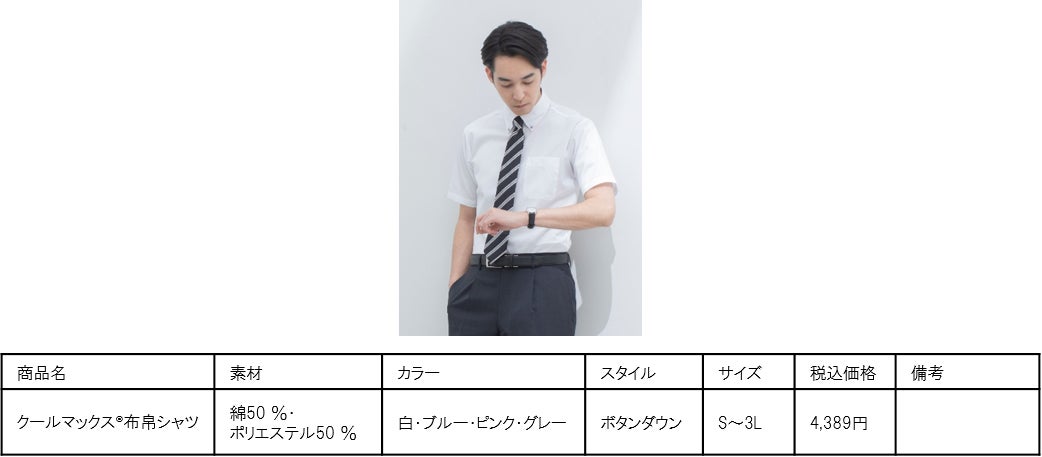 ■夏に嬉しい4つの機能性を標準装備したビジネスシャツが「エアクール®シリーズ」にラインナップ!