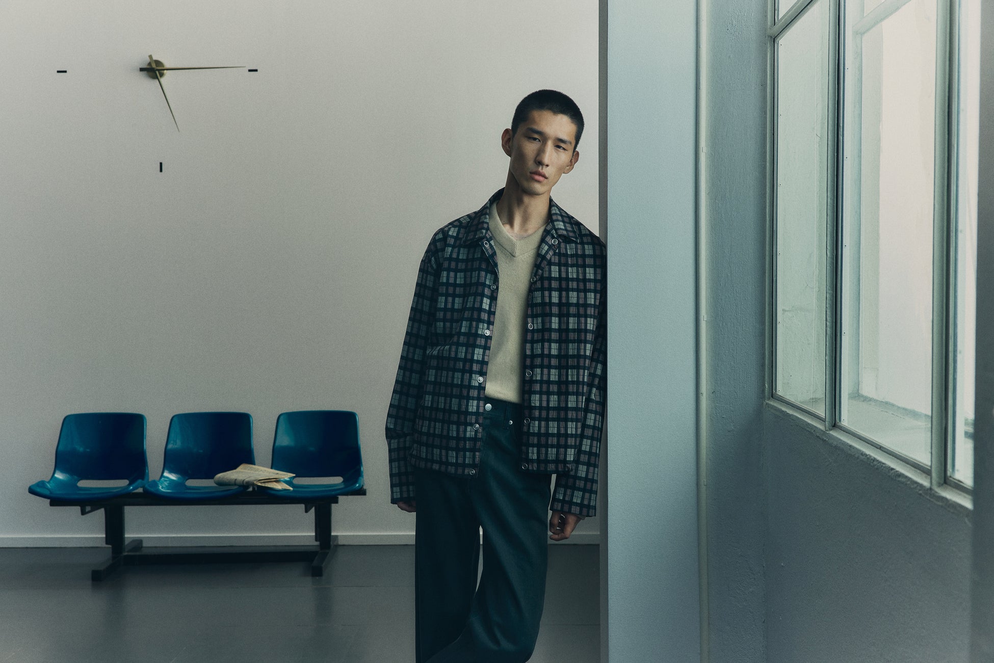 ラインの洗練された美学は、考え抜かれた素材使いに表れています。ウォッシュ加工のレザーは着用を重ねることで風合いを増し、密度のあるダブルフェイスのメリノニット、ピマコットンのスキューバ風ジャージー、ウールスーツ素材が並びます。カラーストーリーはブラック、ダークネイビー、ホワイト、グレー、ベージュを基調に、ライトオーキッドパープルがアクセント。トーナルなチェック柄のフード付きジャケットが暖かみを添え、起毛フランネルシャツには花柄とチェック柄のモチーフが施され、パターンと実用性が絶妙に融合します。
