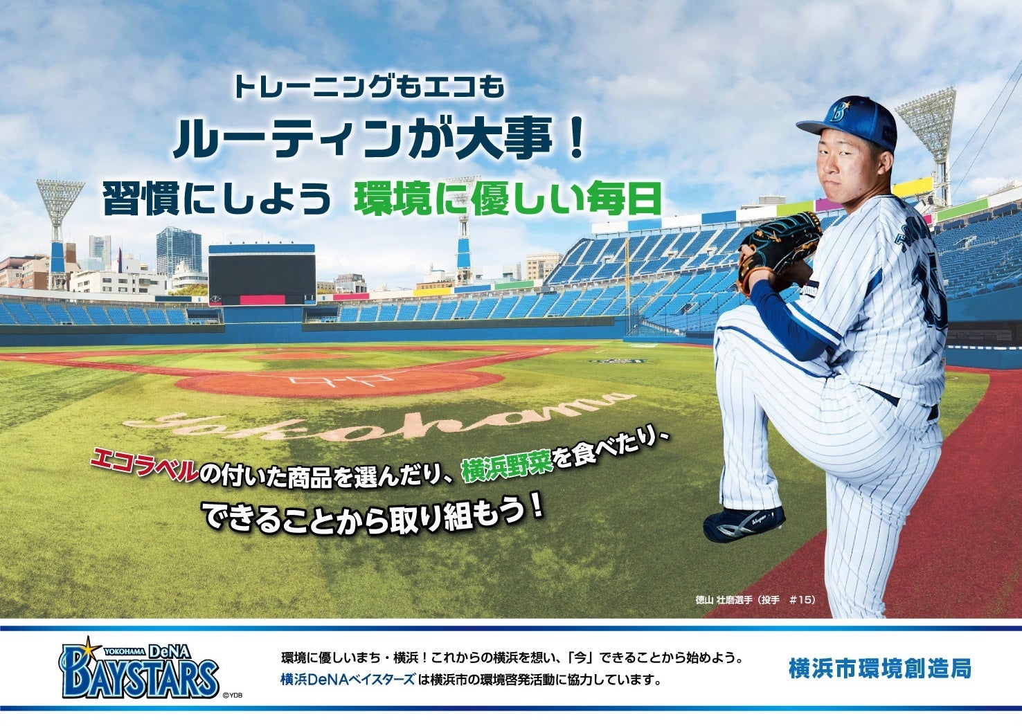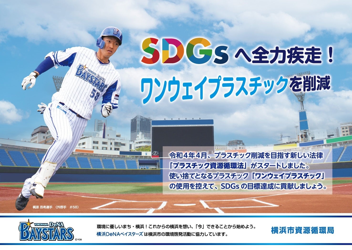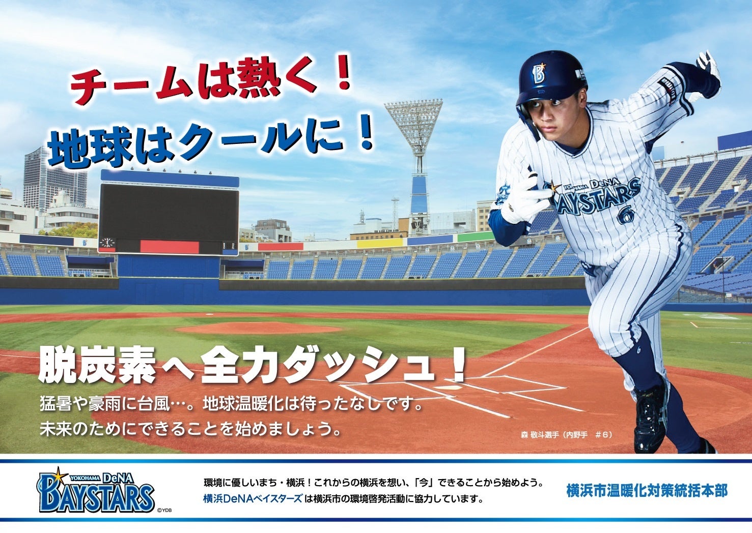 横浜市は、「環境に優しいまち・横浜」の実現に向け、横浜DeNAベイスターズに環境啓発活動の御協力をいただき、選手とコラボしたポスターを作成。横浜駅などの街中で見ることができます。