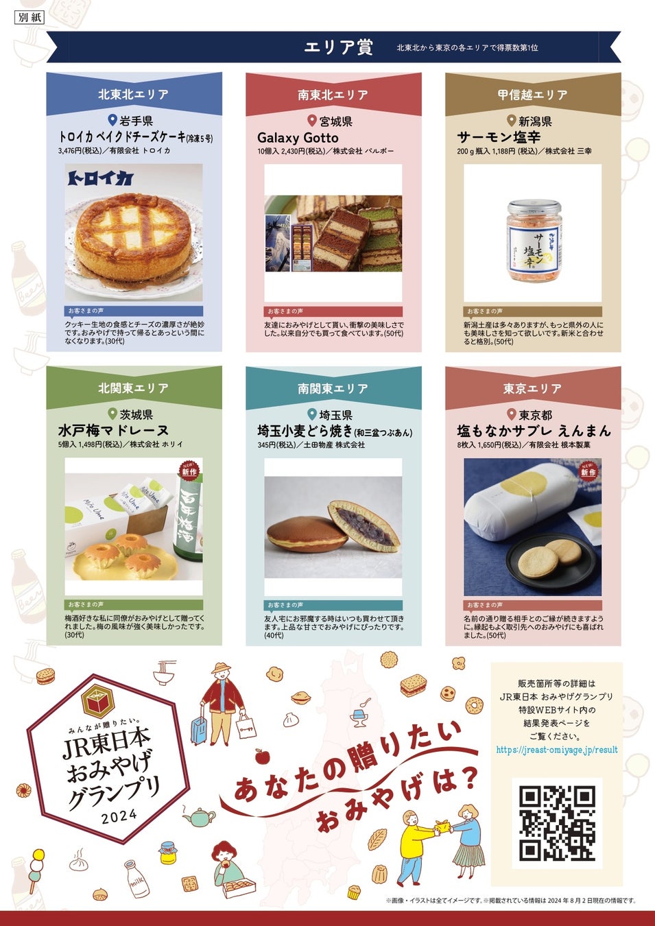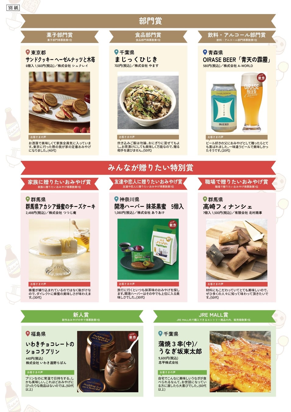 「みんなが贈りたい。JR東日本おみやげグランプリ2024」結果発表!~88品のエントリー商品の中からお客さまの投票で総合グランプリが決定!~