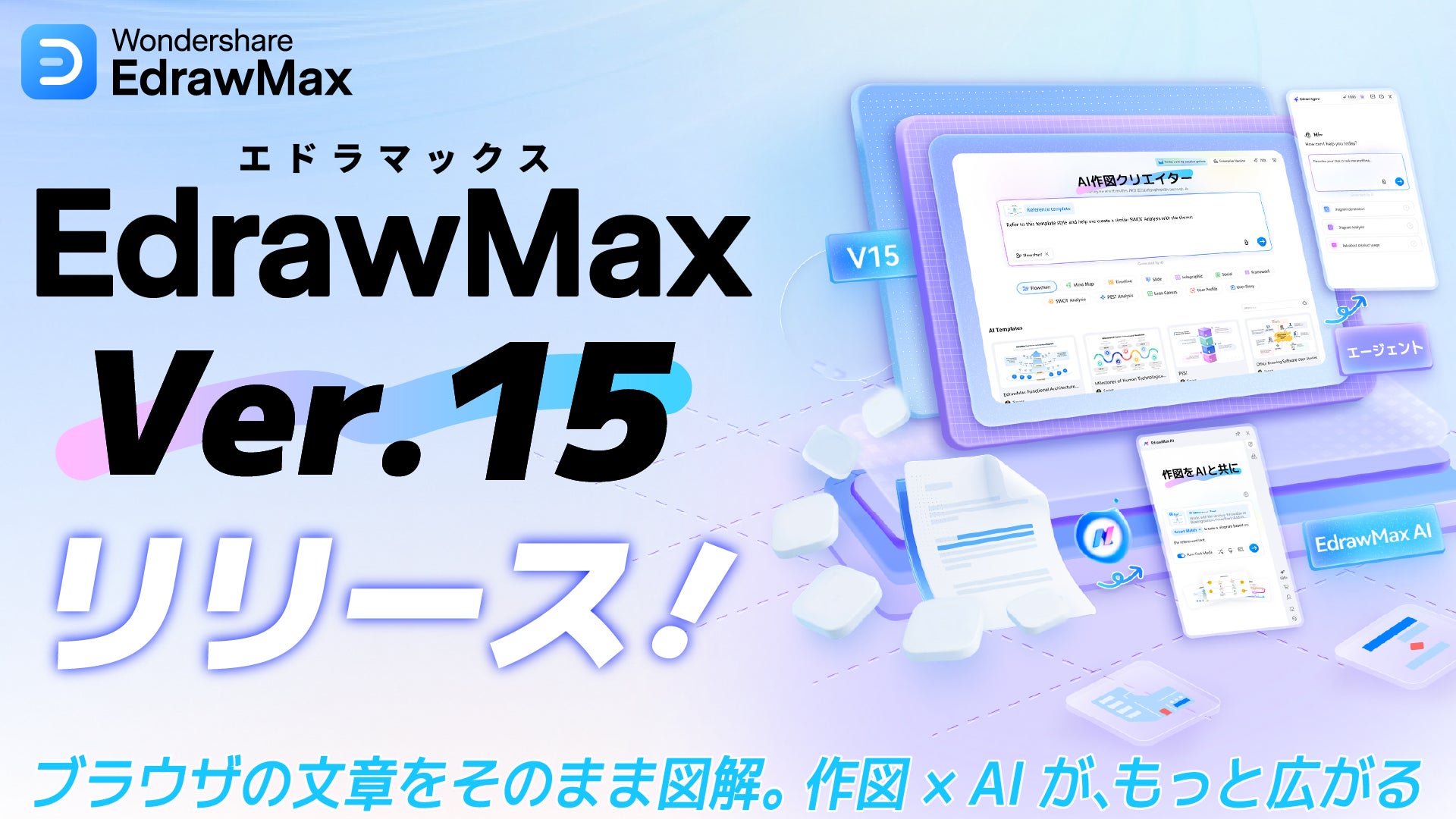 株式会社ワンダーシェアーソフトウェア(東京都港区、代表:呉太兵)は、オールインワン作図ソフト「EdrawMax(以下、エドラマックス)」のV15をリリースいたしました。