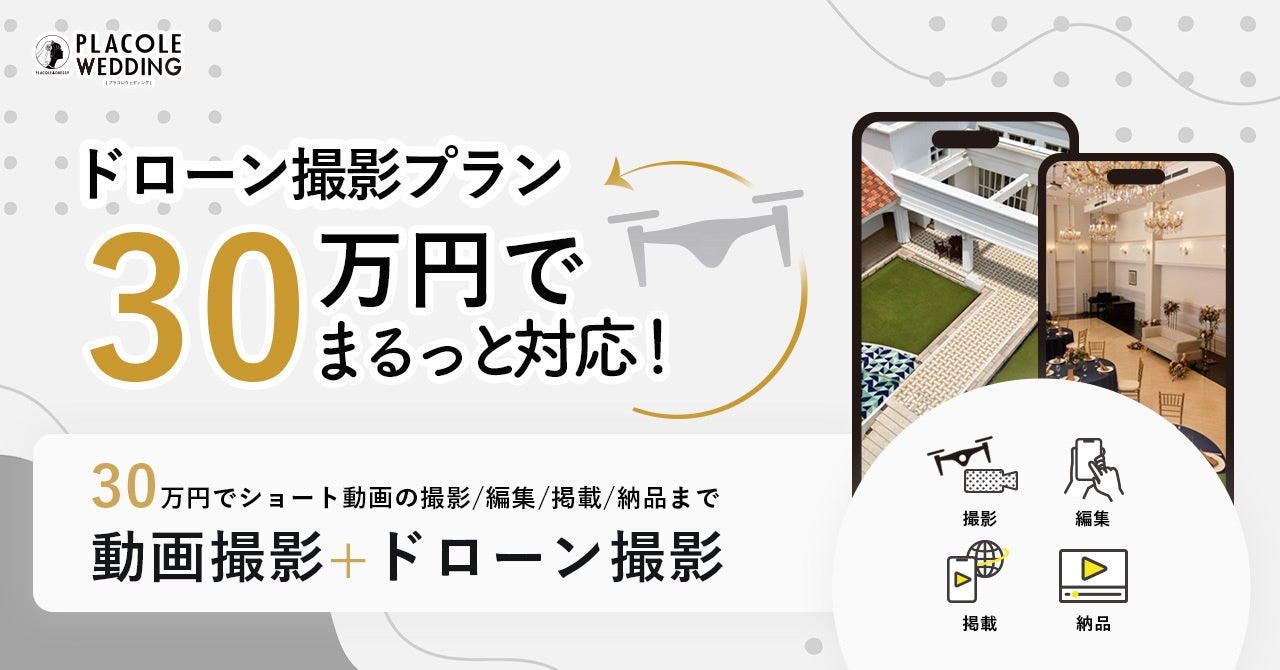 【特別プランスタート】ショート動画で伝える結婚式の魅力、さらに進化!プラコレウェディングがドローン撮影を導入
