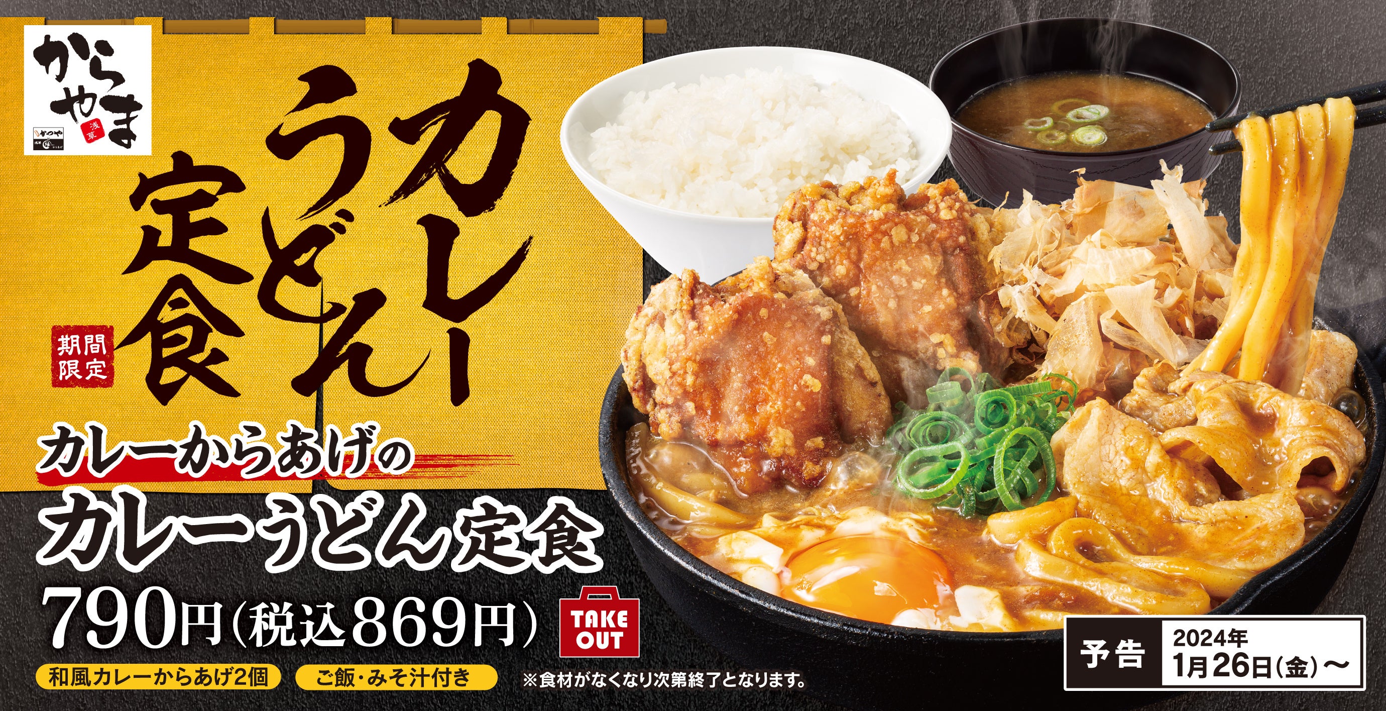 年明けからしばらくして日常が戻るこの時期は、肌を刺す本格的な寒さと生活リズムを取り戻すのが中々大変です。そんな時に思わず食べたくなる、ほっとするやさしさと温かさを兼ね備えた「カレーからあげのカレーうどん定食」を、からあげ定食専門店「からやま」にて2024年1月26日(金)より期間限定で販売を開始いたします。