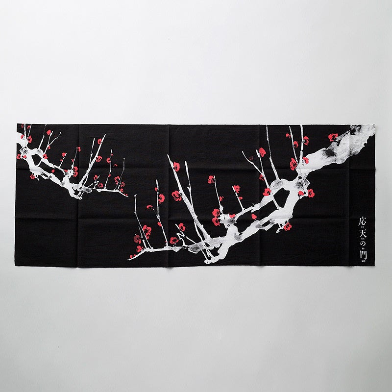 宵闇の様な黒地に紅梅の映える雅な柄の手ぬぐいです。