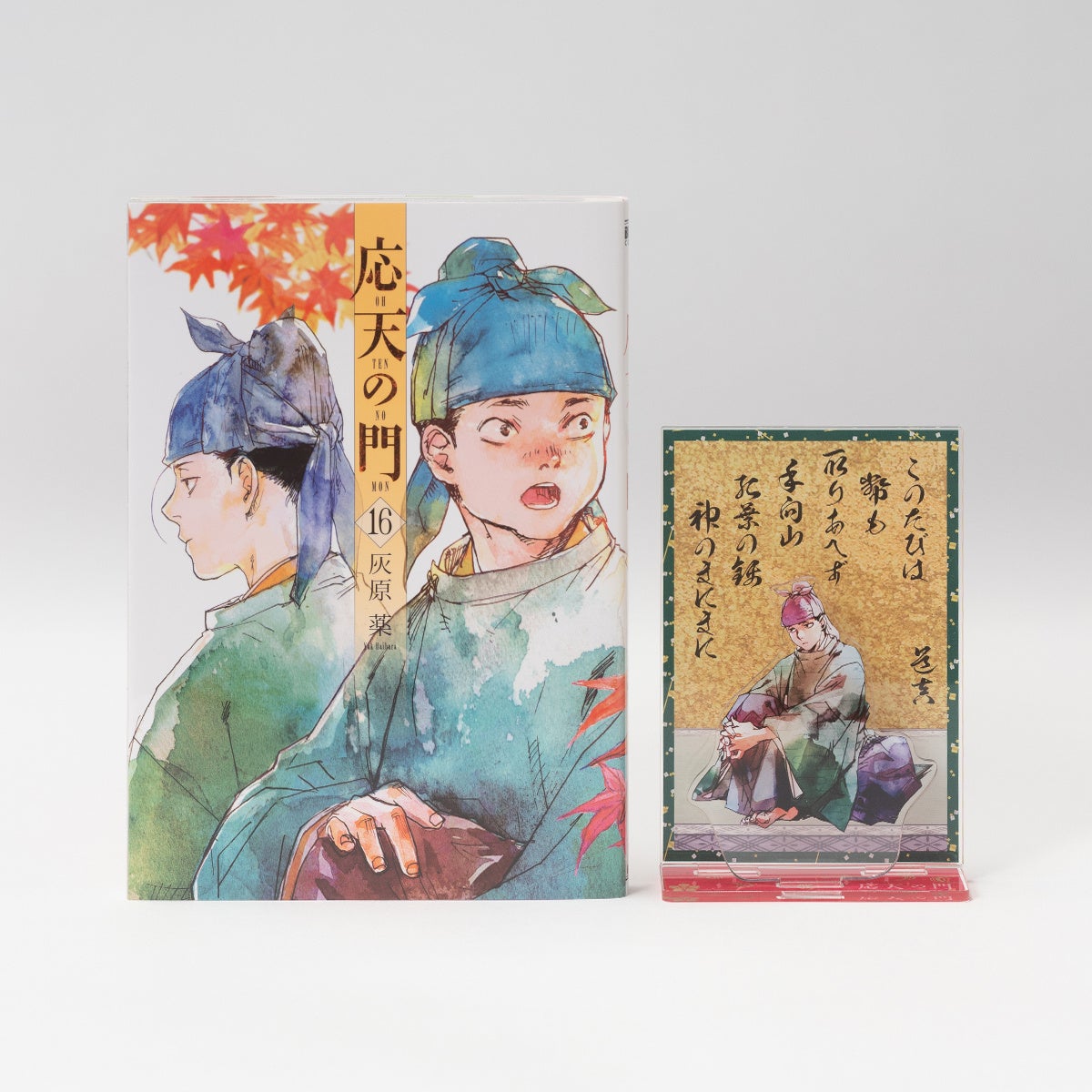 コミックス最新17巻が3月9日に発売となる『応天の門』。百人一首風デザインの「アクリルスタンド」をはじめ、各種グッズは新潮ショップにて販売中です。