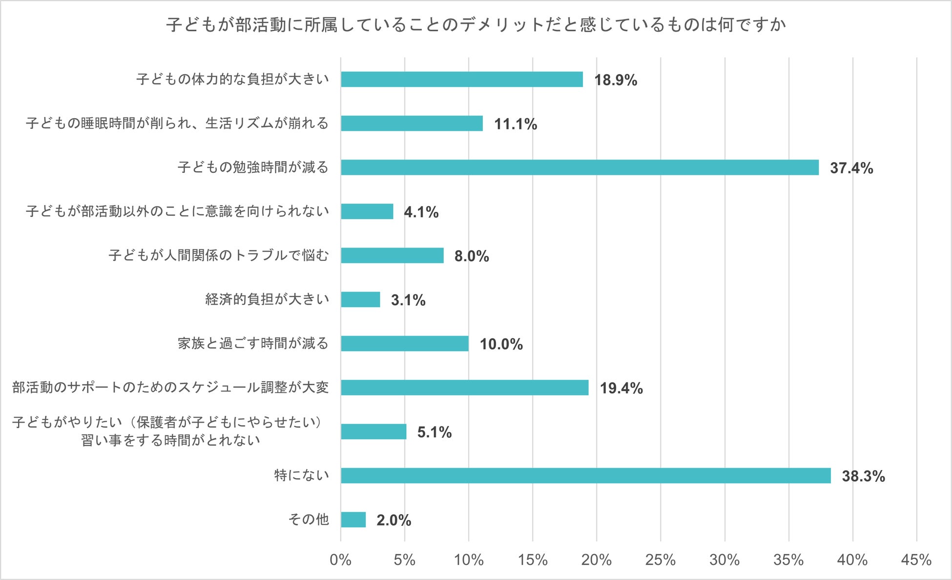 保護者が感じている、子どもが部活動に所属していることのデメリットを保護者に聞いた。